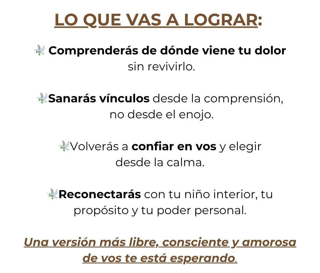 ✔️ Sanar heridas de la infancia y liberar lo que aún pesa.